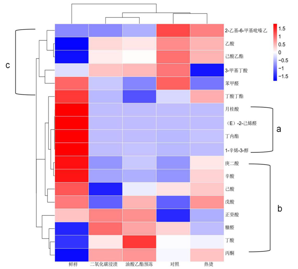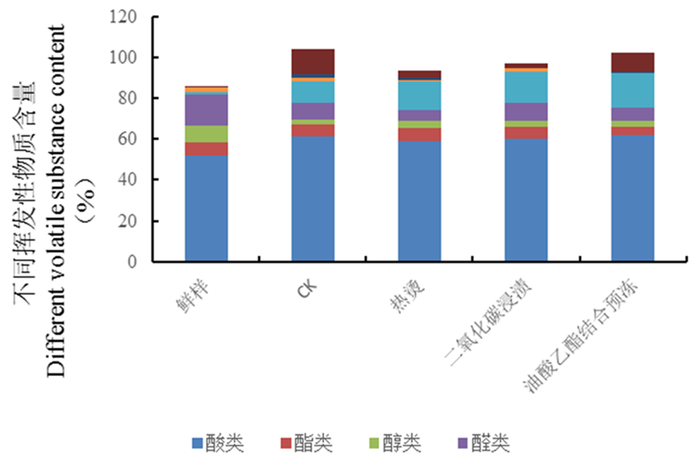| 鲜样 Fresh | 对照组 Control group | 热烫 Heating | CO2 | 油酸乙酯 结合预冻 Alkalime ethyl oleat | ||