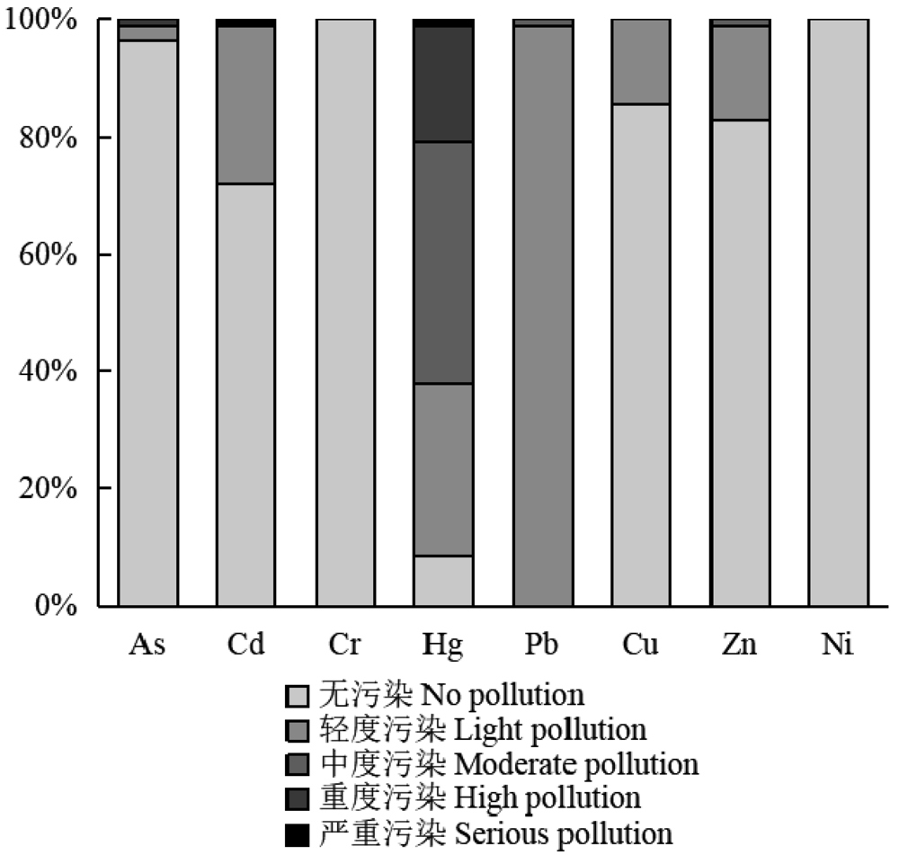| 指标 Indicators | 极小值 Minimum | 极大值 Maximum | 平均值 Mean | 污染程度 Pollution level(%) | |||