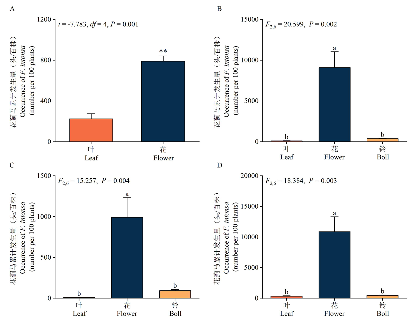 Key words: Frankliniella intonsa; cotton; occurrence dynamics; spatial distribution