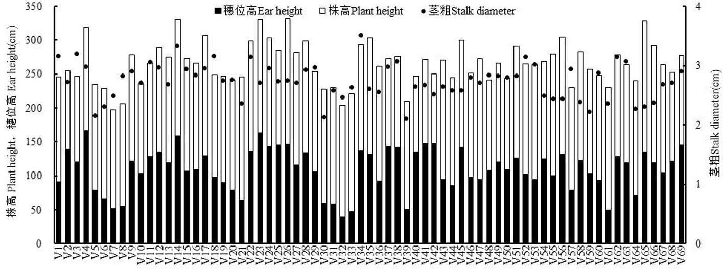 | 穗位高 Ear height | 均值(cm) | 139.31 | 61.65 | 112.65 | 133.74 | 118.31 |