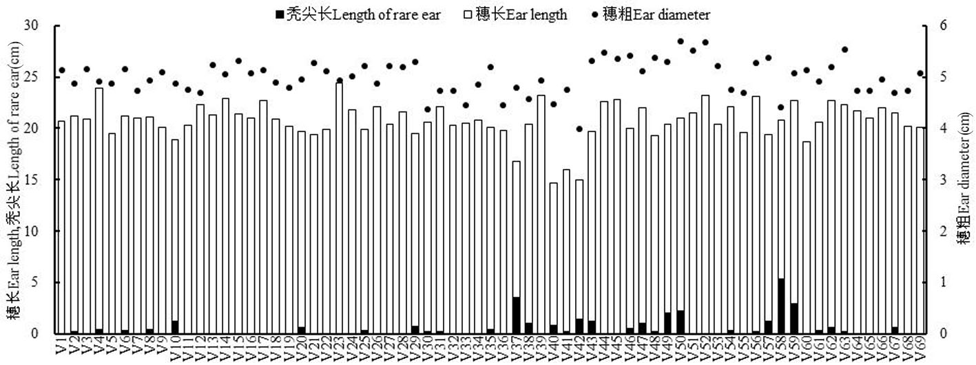 | 穗粗 Ear diameter | 均值(cm) | 4.48 | 4.81 | 4.95 | 5.17 | 5.04 |
