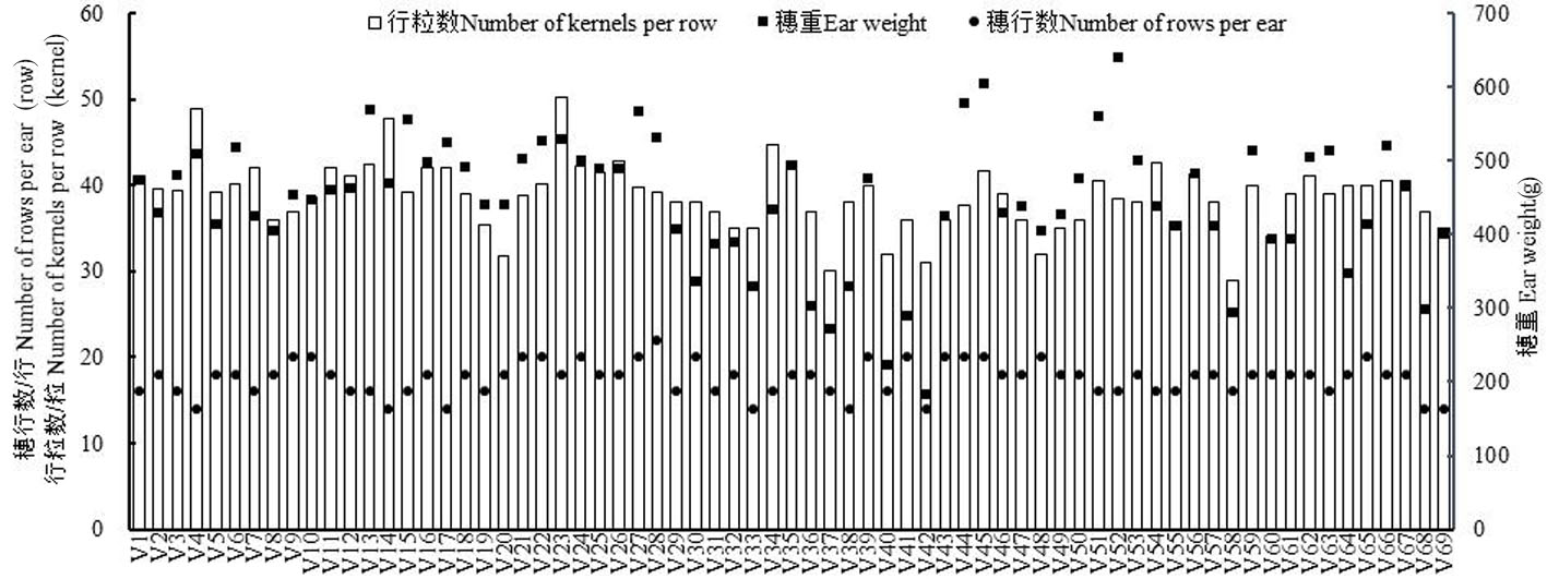 | 穗行数 Ear row number | 均值(行) | 15.36 | 17.24 | 16.64 | 15.87 | 18.27 |