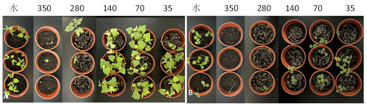 【Objective】 This project aims toclarify the action characteristics of the new biological herbicide Thaxtomin A (TA) in Convolvulus arvensis L. and Abutilon theophrasti Medicus.Finding from which provides a research basis for the practical application of TA. 【Methods】 The effects of different environmental factors (temperature, humidity and rainfall after application) and soil factors (soil organic matter content and soil pH) on the herbicidal activity of TA against Convolvulus arvensis L. and Abutilon theophrasti Medicus were studied by indoor bioassay method. 【Results】 The results showed that at 35℃ / 30℃, 50% humidity, soil pH = 9 and high organic matter content, TA had the best control effect on Convolvulus arvensis. However, 0.5 h rainfall after application would significantly reduce the control effect and should be sprayed again. At 30℃/ 25℃, 70% humidity, soil pH = 8.0, and low soil organic matter content, TA had the best control effect on Abutilon theophrasti. Rainfall within 1 h after application would reduce its control effect, and appropriate amount of pesticide should be applied. 【Conclusion】 Different climatic factors and soil factors have significant effects on the efficacy of TA, At the same time, for different weeds, the changes of environmental factors have different effects on the efficacy of TA. Different temperatures,humidity,duration of light exposure,rainfall after pesticide application,soil organic matter and soil pH value has a certain impact on the herbicidal activity of TA.