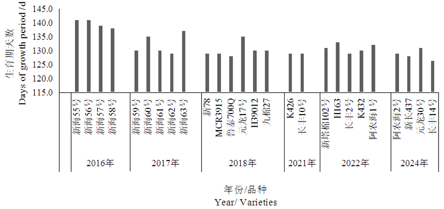 Tab.1 Number and names of the 26 approved Xinjiang extra-Long staple cotton varieties from year of 2016 to 2024