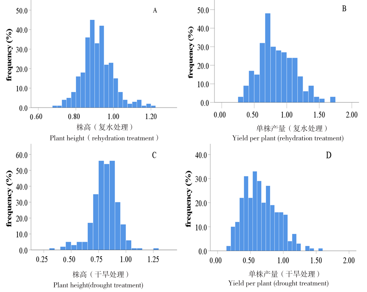 关键词: 芥菜型油菜, 全生育期, 抗旱性, 抗旱系数, 隶属函数, 聚类分析
