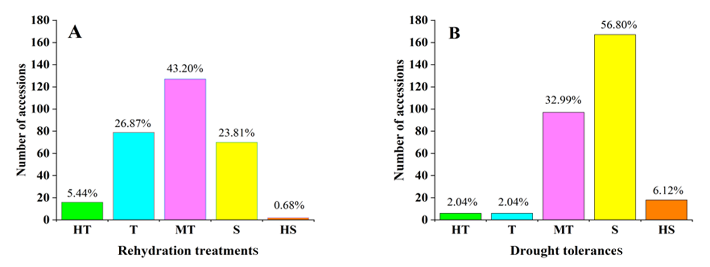 Key words: Brassica napus; whole reproductive period; drought resistance; drought resistance coefficient; membership function; cluster analysis