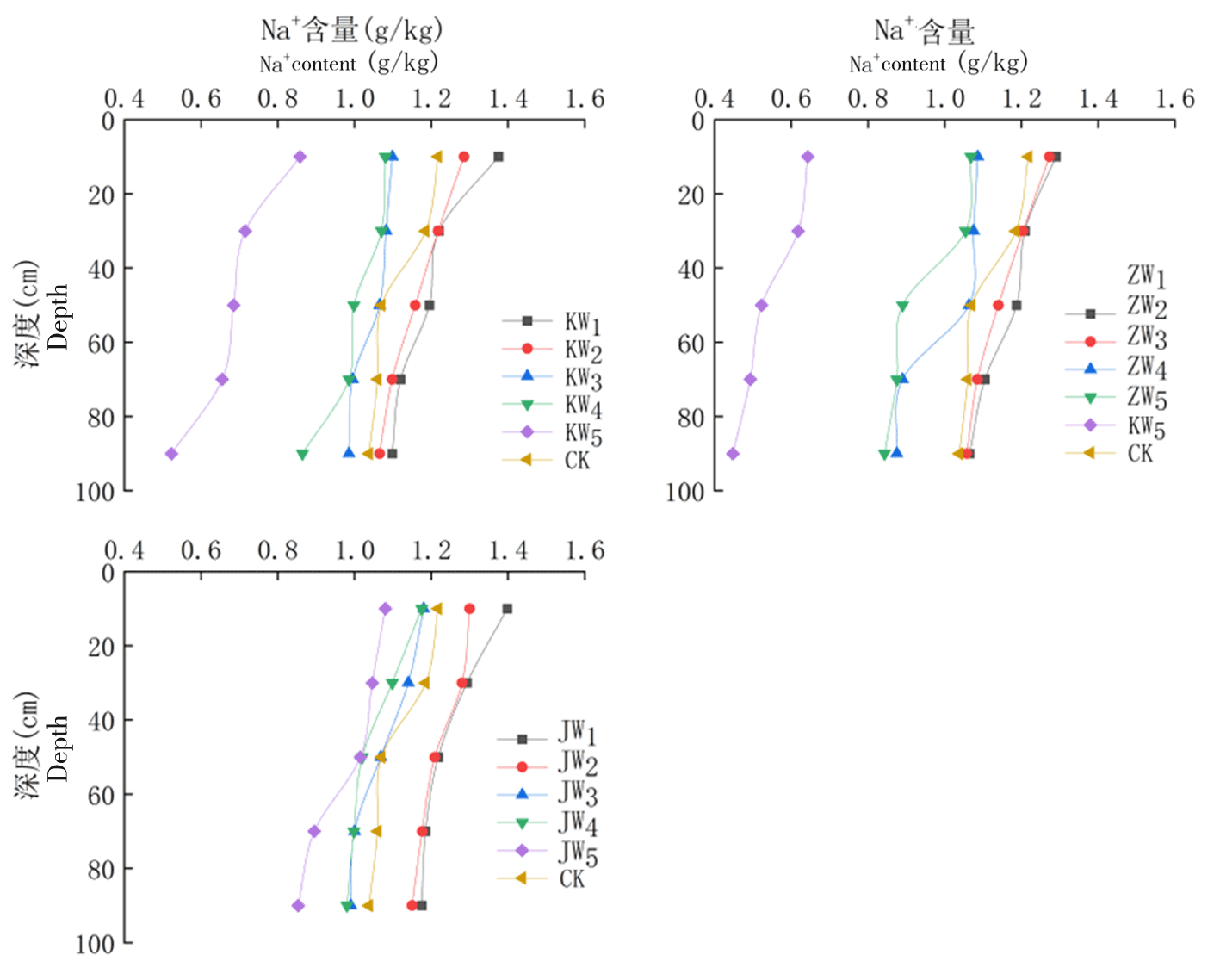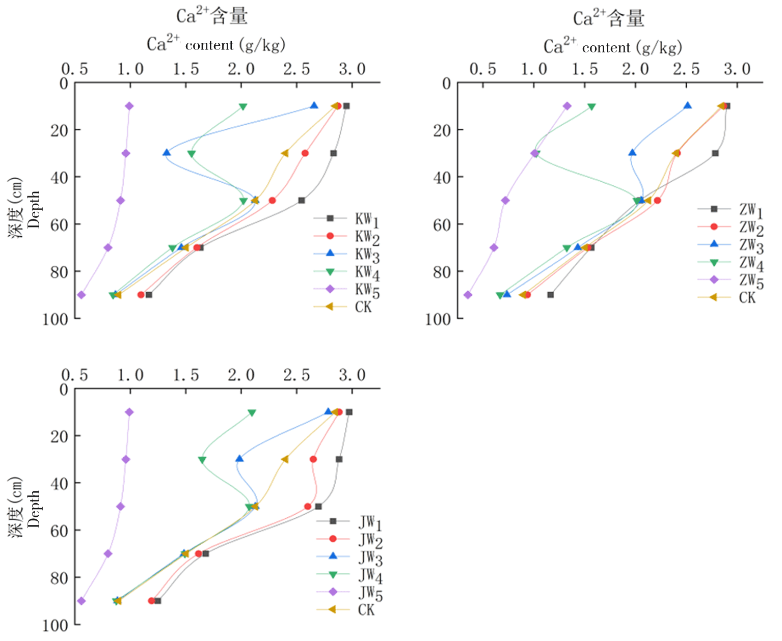 | 土层深度 Soil depth (cm) | 取样位置 Sampling location | W1 | W2 | W3 | W4 | W5 | CK |