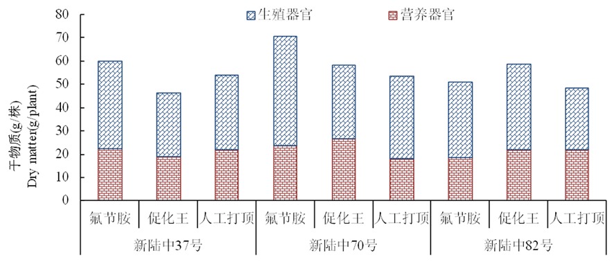 | 营养器官 Vegetative organs | 氟节胺 | 新陆中37号 | 97.58a | 81.51b | 60.91a | 37.43a |