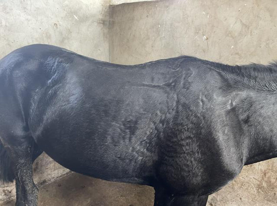 | 9 | 调教圈打圈或遛马机热身30 min,骑乘30 min 跑道快步热身:马匹分组进入跑道后,在领队马的带领下慢步800 m,快步800 m后完成热身,前往草地训练场地:马匹分队进入无栏杆,有地标的草地开展训练。马匹按照既定方向完成2400 m(1200 m折返)直线缩短跑训练,在草地训练的三天后可以不使用固定的领队马,让每匹马都交替作为领队马,增加马匹信心 | |